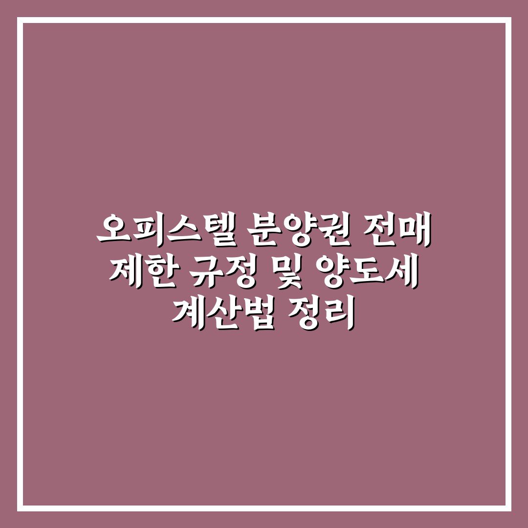 오피스텔 분양권 전매 제한 규정 및 양도세 계산법을 쉽게 이해하고자 하는 분들을 위한 핵심 정보와 실무 가이드 제공